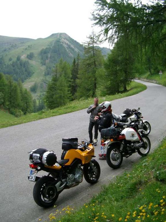 Die anderen haben sich einfach das falsche Motorrad gekauft, mit dem sie restlos, aber auch wirklich restlos, überfordert sind. Zu groß, zu schwer, zu stark. Aber hauptsache am Treff einen auf dicke Hose machen. Mir kann keiner erzählen, dass die alle die schöne Aussicht der Alpen beim Fahren genossen haben. Das geht bei einer Pause wesentlich besser.