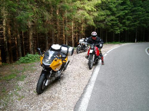 Irgendwo in Österreich hat dann Stefan der Rappel gepackt. Er ist mit über 140km/h über die Landstraße gebrettert und hat alles überholt, was ihm vors Vorderrad kam. Als Letzter der Kolonne habe ich sie irgdenwann verloren. Als es an einer Kreuzung drum ging, zum Hantenjoch oder die andere Variante zu nehmen, entschied ich mich, da ich persönich mir nichts tolleres als das Hantenjoch vorstellen konnte, dort hin zu fahren. War natürlich falsch, aber das merkte ich erst, als nach dem Hantenjoch im Namlostal mein Handy klingelte und Klaus sich darüber beschwerte, wie ich bloß die andere Richtung fahren konnte. Hätten sie halt an der Abbiegemöglichkeit langsam getan.............